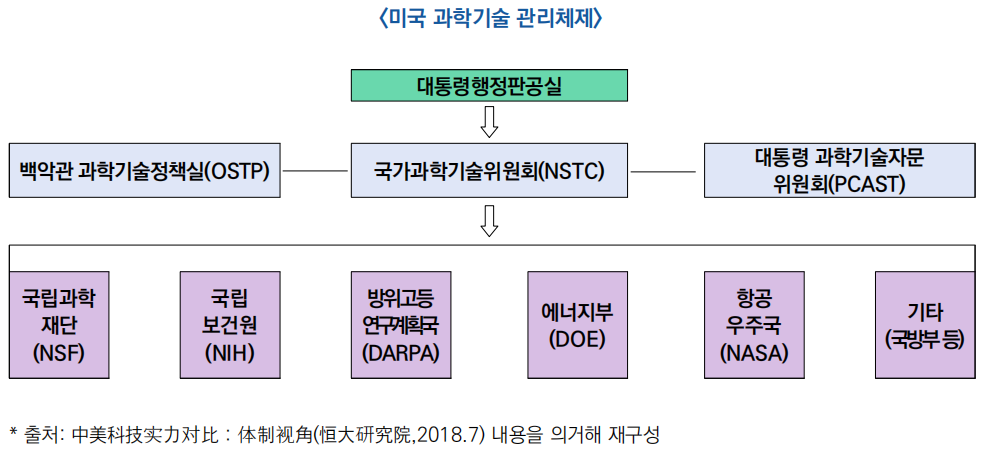 ![]() ![]() 3) 미·중 과학기술 관리체제의 차이점