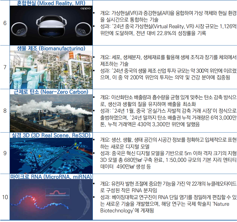 ○ 선정된 용어는 인공지능+, 저고도 경제, 달 뒷면 샘플링, 양자 기술, 인체 기반 인공지능, 혼합현실(MR), 생물 제조, 근제로 탄소, 실경 3D, 마이크로 RNA 등이 포함됨