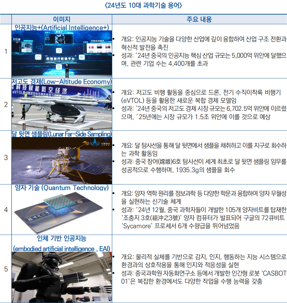 □ 중국 전국과학기술용어심의위원회는 ′24년도 10대 과학기술 용어를 선정하여 발표(25.1.16)