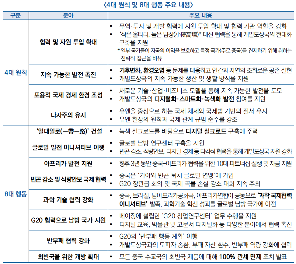 ○ 시진핑 주석은 지속 가능한 발전과 남북 격차 해소를 위한 협력 강화 및 다자주의 원칙을 강조