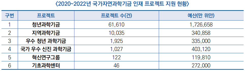 - 중앙정부는 35세 이하 연구자를 대상으로 기초연구 기금을 우선 배분