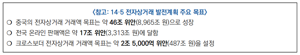 □ (정책) ′21년 10월 중국 상무부, 중앙 인터넷정보 판공실, 발전개혁위원회는 공동으로 ‘14·5 전자상거래 발전계획’을 발표하여 중국 전자상거래의 발전 로드맵을 제시