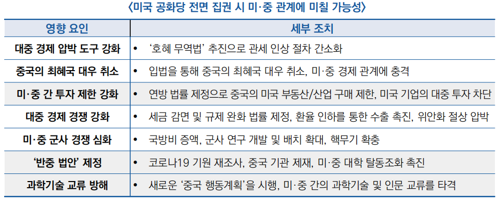 - 2024년 대선 이후 새로운 미국 정부는 미중 관계를 재설정할 중요한 기회를 가질 것으로 전망