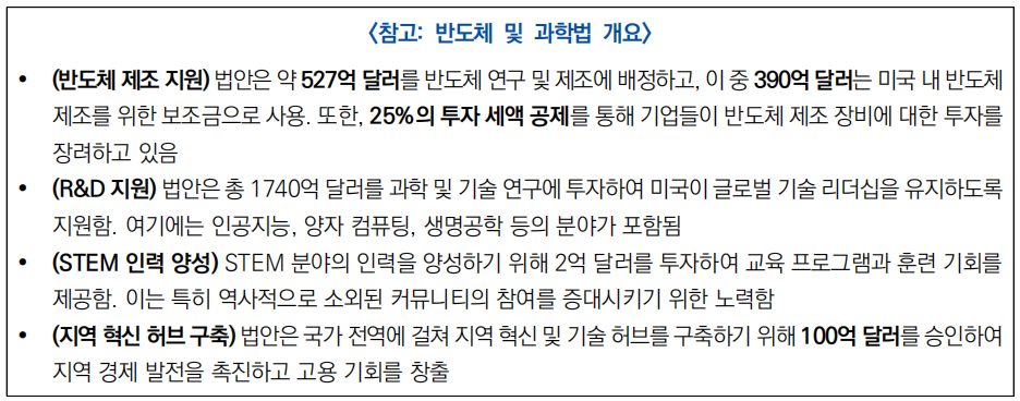 ○ (배경) 지난 4년간 미국 바이든 행정부는 반도체와 과학법(CHIPS and Science Act)을 통해 미국 내 반도체 제조업을 지원하며, 일본, 네덜란드 등과 협력하여 대중국 반도체 장비 수출 제한을 강화해 왔음