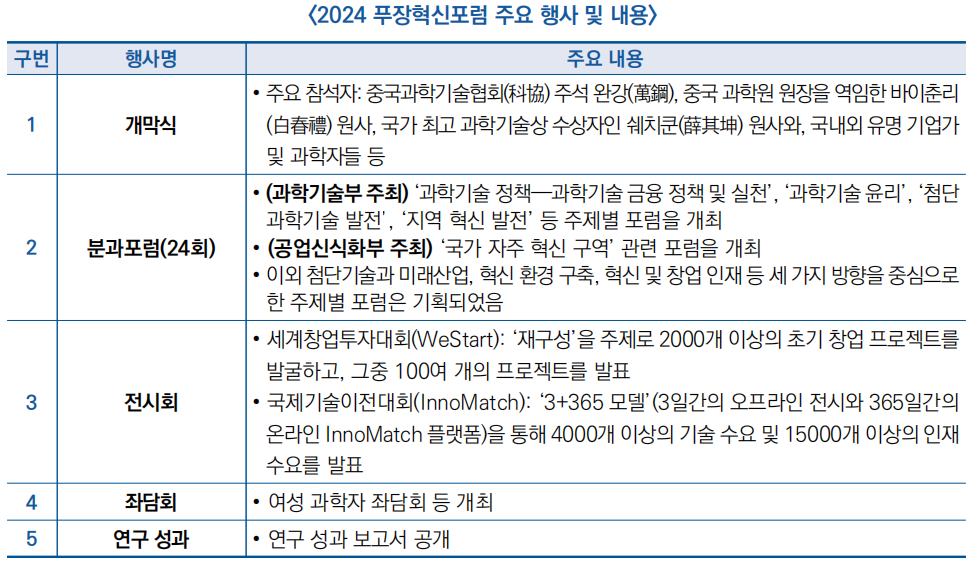 ▷ (과학기술 성과 공유 플랫폼) 이번 포럼에서는 ‘중국 지역 과학기술 혁신 평가 보고서 2024’, ‘2023 상하이 과학기술 금융 생태계 관찰 보고서’, ‘2024 주요 과학기술 분야의 전방위 동향 분석’ 등 다양한 연구 성과 및 보고서를 발표할 예정