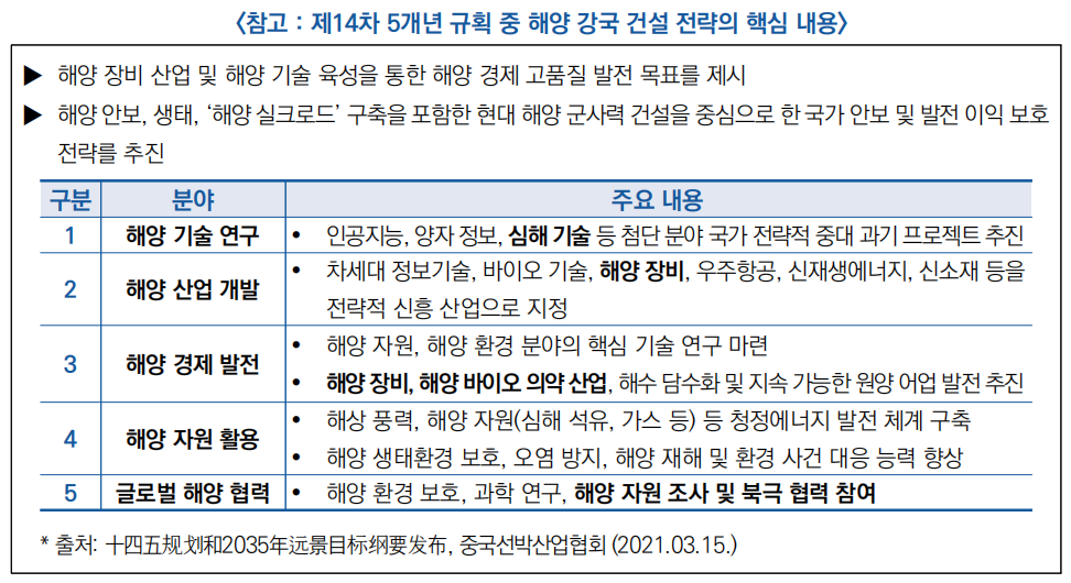 ![]() ○ 중국 자연자원부의 최근 발표 자료에 따르면, 중국 해양 신흥 산업 발전 및 자원 개발 등 여러 분야에서 성과를 이루고 있음