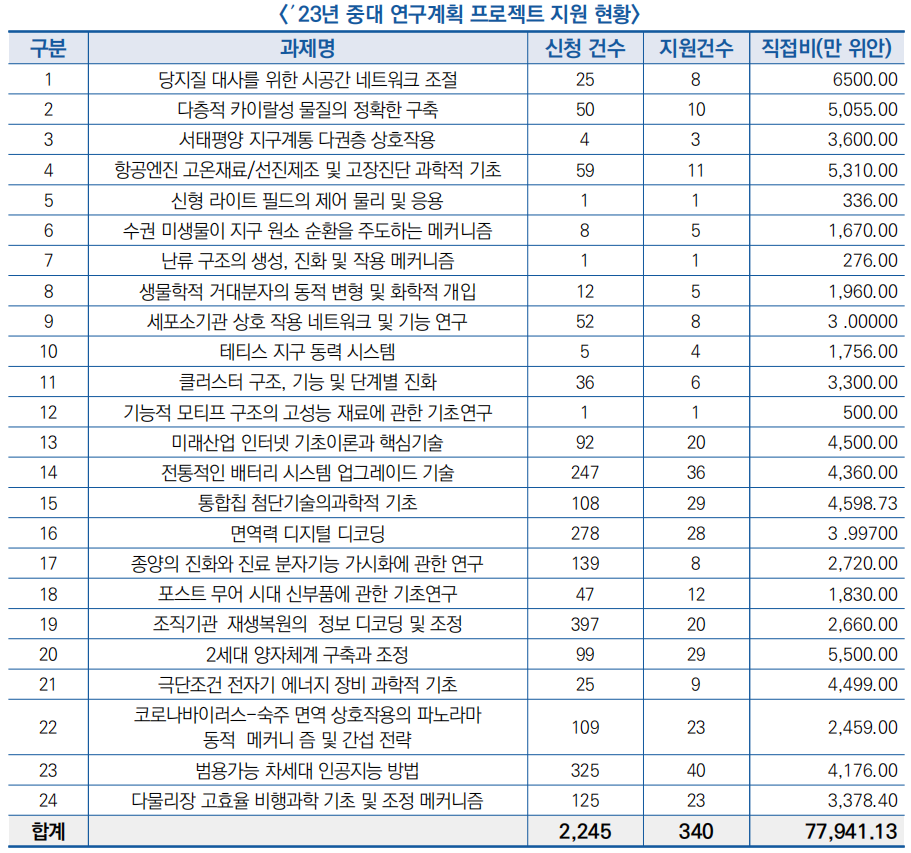 3) 중대 연구계획 프로젝트