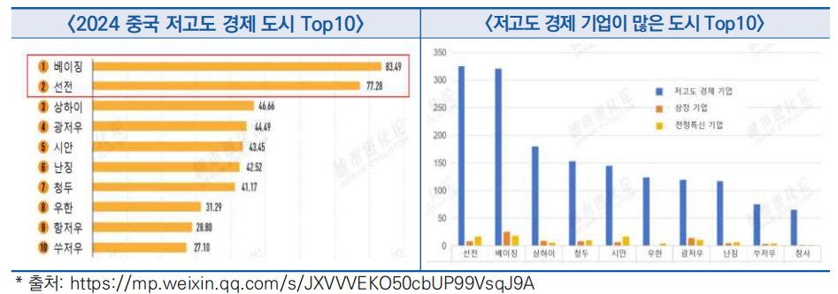 - 베이징과 선전은 각각 83.49점과 77.28점으로 중국내 저고도 경제 선도도시로 부상