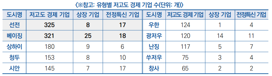 ![]() ○ ′23년 말 기준 선전, 베이징의 저고도 경제 기업수는 각각 325개와 321개로 전국 1~2위를 차지하고 있으며, 타 도시와의 격차가 크게 나타남