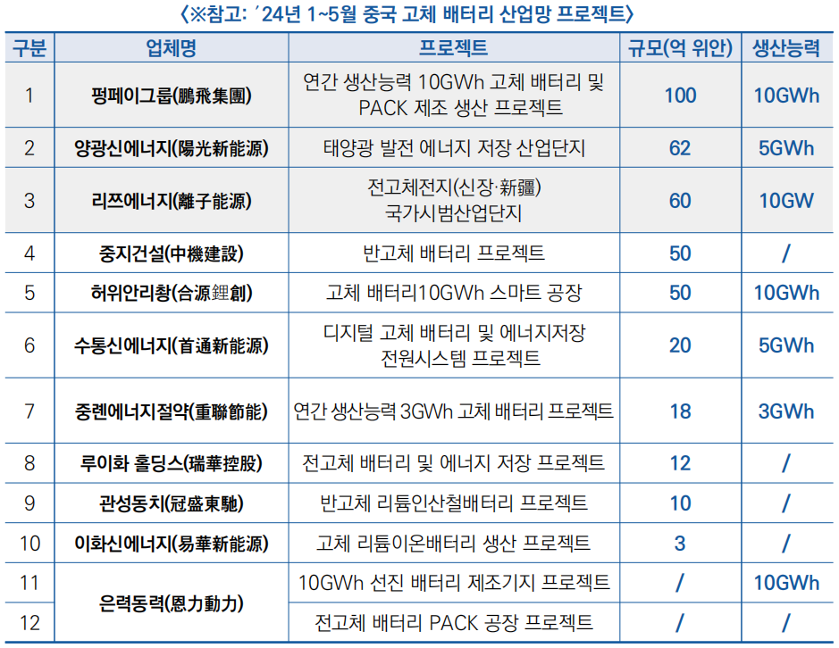 - 중국 공업신식화부와 재정부 등 부처는 전고체 배터리 개발에 사상 최대 규모의 지원금을 투입