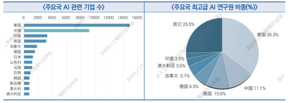 ![]() ○ 중국은 AI 기업수나 고급 인공지능 연구원 규모에 있어 세계 2위를 차지