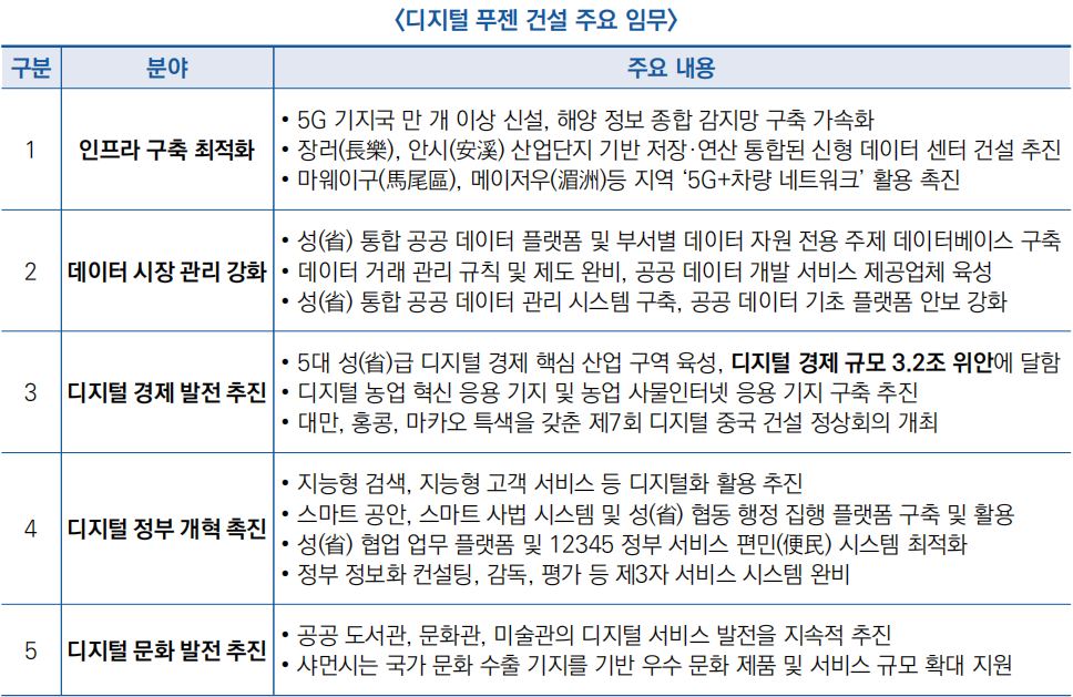 □ 푸젠성 디지털 경제 규모 3.2조 위안(약 601조 240억 원) 초과 목표(5.12)