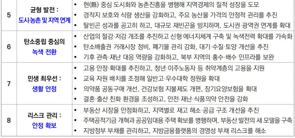 ○ (2026년 ‘8대 중점 방향’) 정치국은 2026년 경제운영의 기본 틀로 △내수 확대 △혁신 주도 △구조 개혁 △대외개방 △균형 발전 △녹색 전환 △민생 우선 △리스크 관리 등 ‘8대 중점 방향(八個堅持)’을 제시