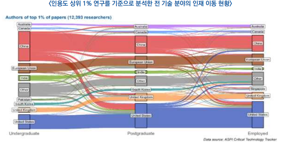- 영국은 상위 1%와 10% 연구자 집단에서 모두 4위를 기록해, 상위권 인재 확보 경쟁에 지속적으로 참여하고 있는 것으로 평가됨