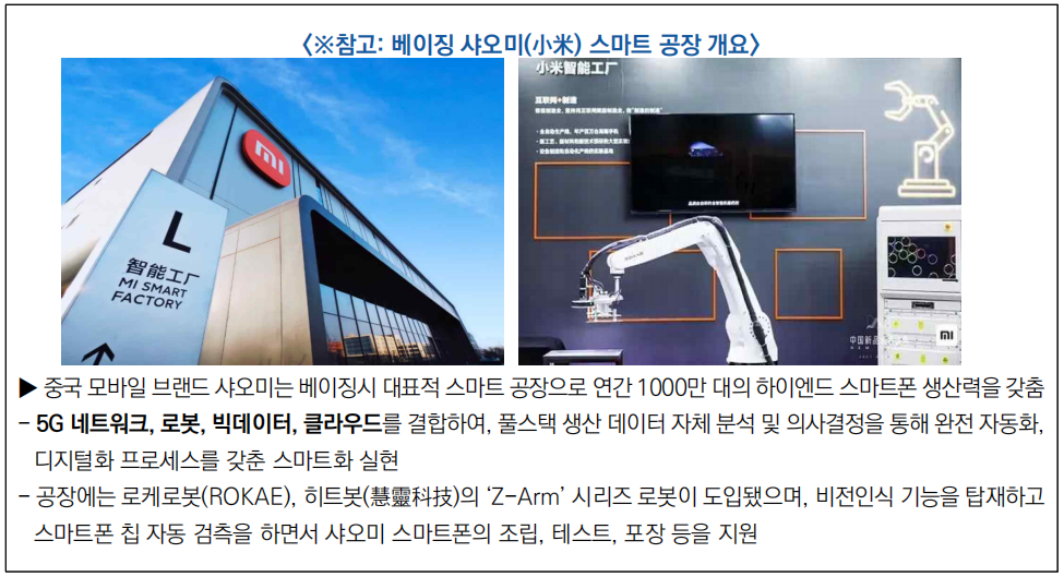 - 스마트 공장·디지털 작업장 핵심 공정 장비의 디지털 제어율은 88.12%, 생산 설비 네트워킹율79.55%에 달함