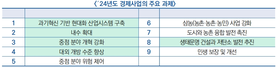 - 핵심기술, 신형 인프라, 에너지절감·탄소배출감소 등 중점 분야 투자로 새로운 성장동력 확보