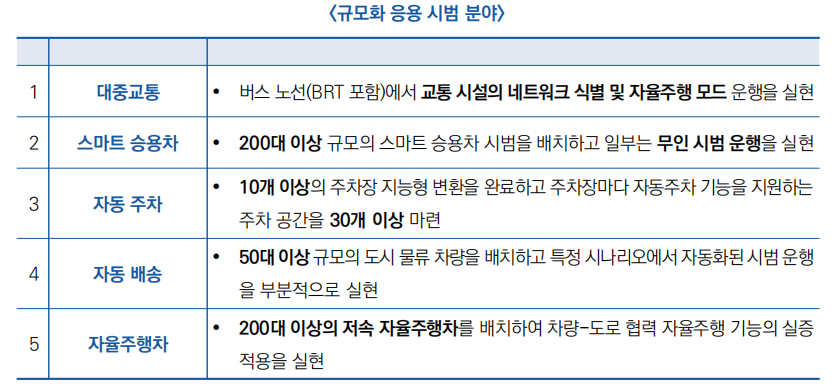 - 시범 지역 내 5G 통신 네트워크, C-V2X 등 인프라 구축