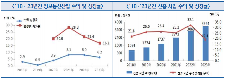 - ′23년 정보통신산업 분야 수익은 1.68조 위안으로 전년 대비 6.2% 성장, 업무량은 전년 대비 16.8% 증가