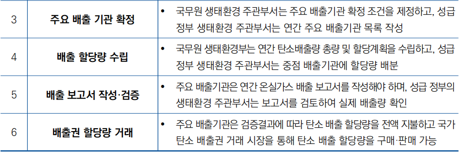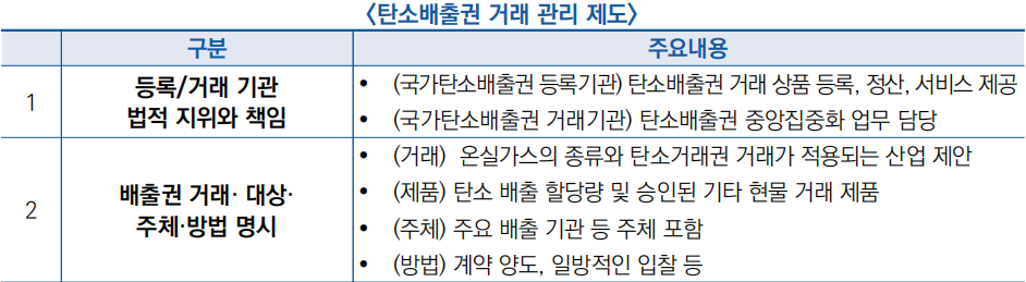 - 여섯가지 측면에서 탄소배출권 거래 관리 제도 수립