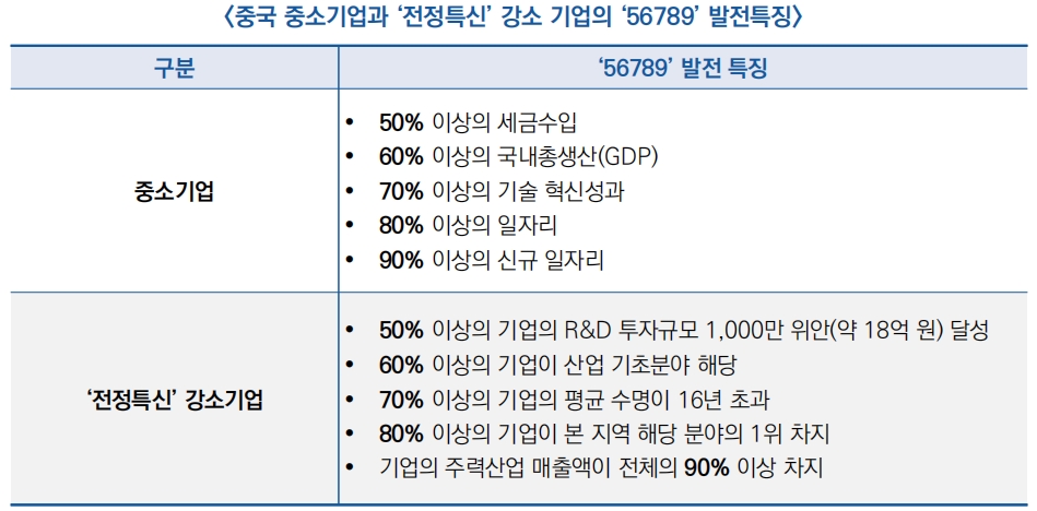 ![]() ○ 현재 중국 중소기업과 ‘전정특신’ 강소 기업은 모두 ‘56789’라는 특징 보유