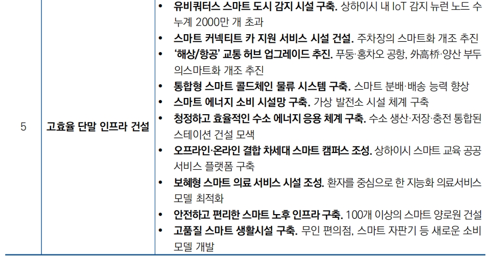 - 종합적이고 강력한 서비스 기능을 갖춘 세계 최대 규모의 혁신 인프라 클러스터 및 초대형 도시 스마트 단말 인프라 체계 구축