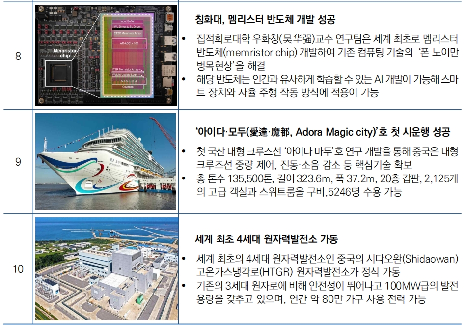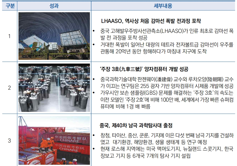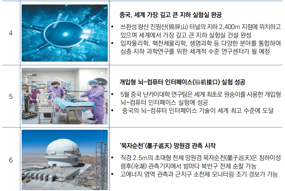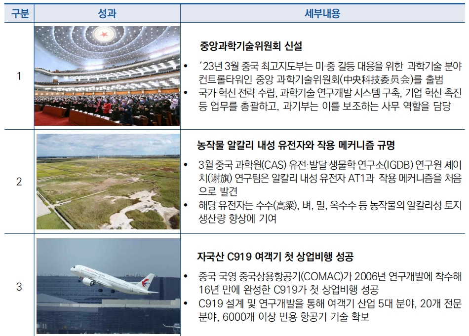 | 2023년 중국 과학기술 주요 이슈 및 성과 선정 | ||