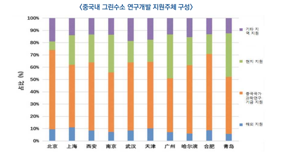 - 중국 내 그린수소 R&D를 지원하는 1위 기관은 중국 국가자연과학연구기금위원회(NSFC)으로 집계됨