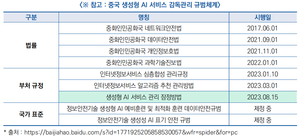 | 국가인터넷정보판공실, ‘생성형 AI 서비스관리 잠정방법’ 발표 | ||