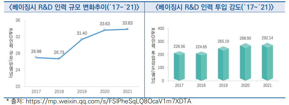 : ‘17년부터 베이징은 고급·정밀·첨단(高精尖) 산업 발전 수요에 따라 기초연구와 응용 연구 R&D 인력 규모를 점차 확대 중