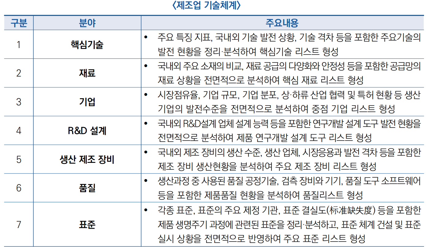 ![]() ![]() ○ 제조업 기술체계 평가 및 확장