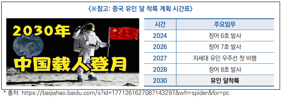 ○ 중국은 이 계획을 실현하기 위해 착륙선과 유인우주선 등 각종 장비를 개발· 제작 중