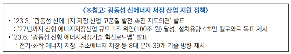 * 리튬이온배터리,수소(암모니아) 에너지 자증 등을 포함하여 양수 저장 이외의 새로운 에너지 저장 기술을 의미