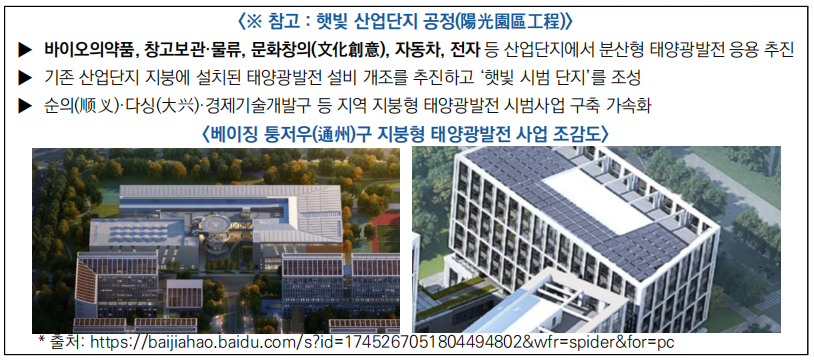 ○ 특히, 베이징시는 국제과학기술혁신센터 역할을 강화하는 데 초점을 맞춰 과학기술 혁신으로 재생에너지 질적 발전 추진 강조