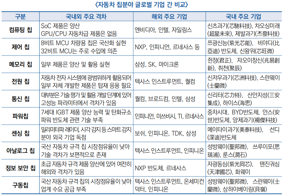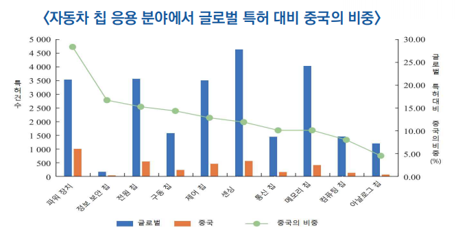 - 그러나 시장 규모는 세계 1위인 반면, 자동차 칩 자급율은 10% 미만