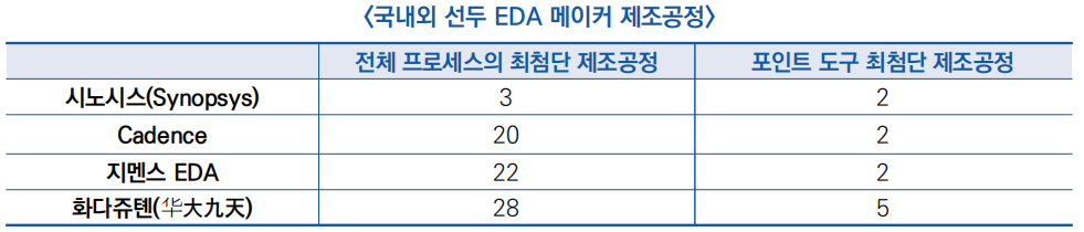 - (설계) 국내 제조업체의 해외 EDA 소프트웨어 및 IP 코어에 대한 의존도가 강한 가운데Synopsys, Siemens Mentor 등 선두 EDA 기업이 국내 시장의 약 90% 점유