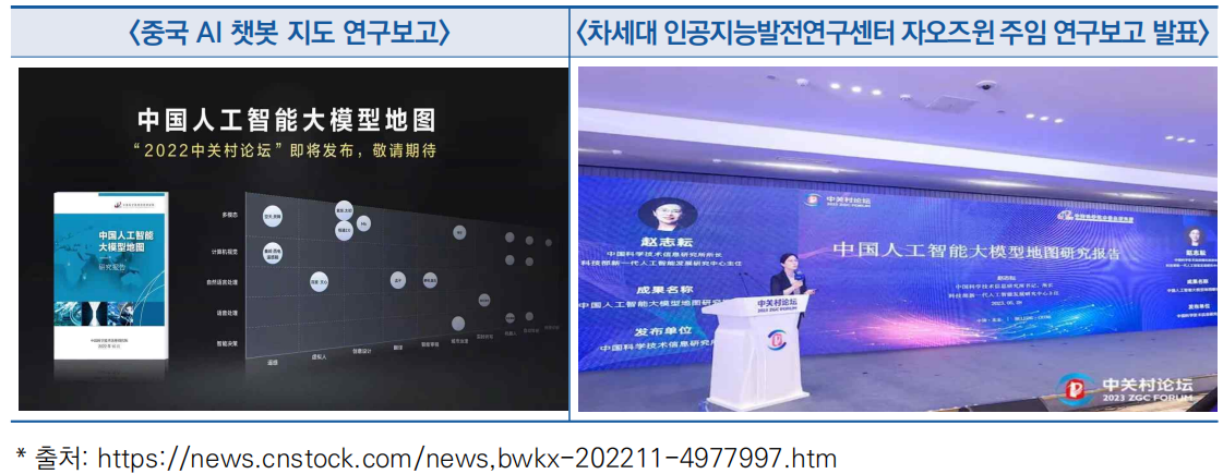 ○ 과기부 차세대 인공지능발전연구센터는 2023 중관촌 포럼·AI 챗봇 발전 포럼에서 ‘중국 AI 챗봇 지도 연구보고’를 발표
