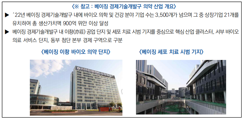 * <베이징경제개발구 의약품·보건 산업 고품질 발전 촉진 조치>와 <베이징경제개발구 첨단의료기기 스마트제조업 고품질 발전 촉진 조치>, <베이징경제개발구 세포·유전자 치료산업 고품질 발전 촉진 조치> 등 3대 지원정책