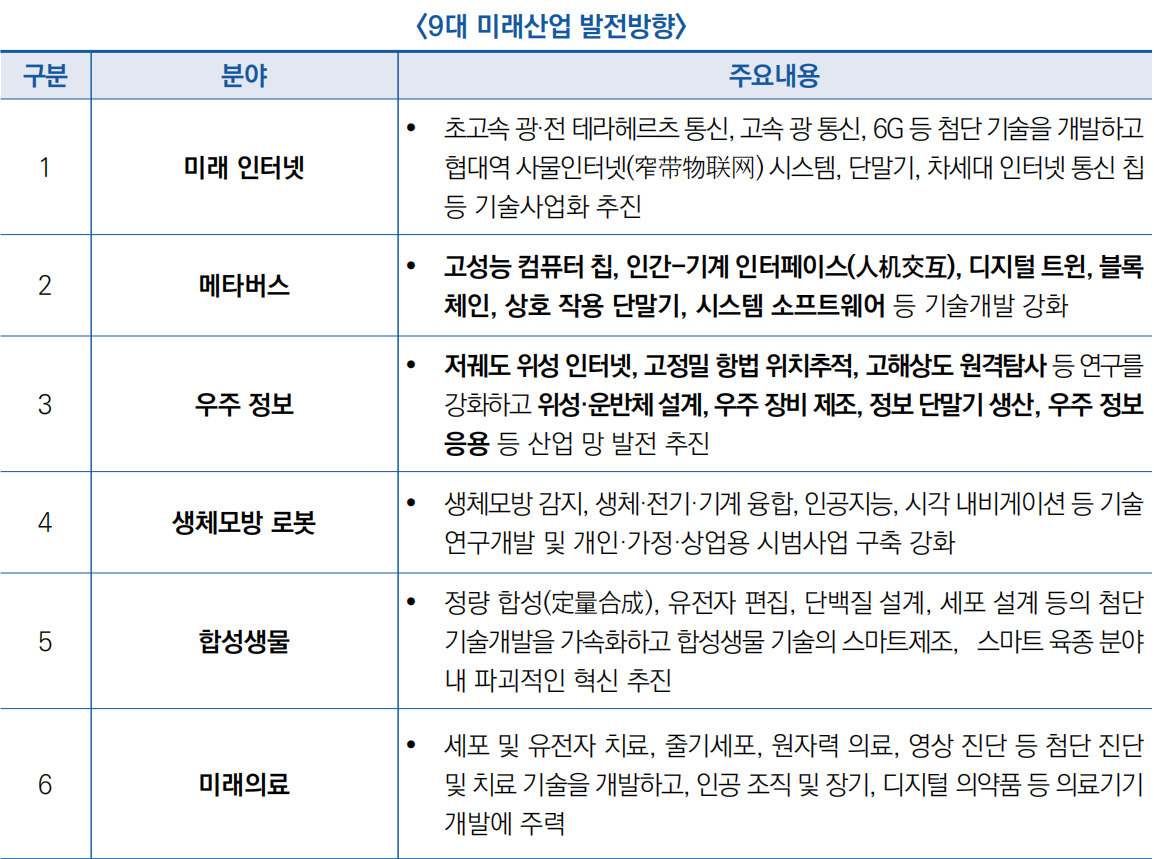 □ 미래 인터넷, 메타버스, 우주정보, 생체모방 로봇, 합성생물 등 미래산업 육성 강화(2.22)