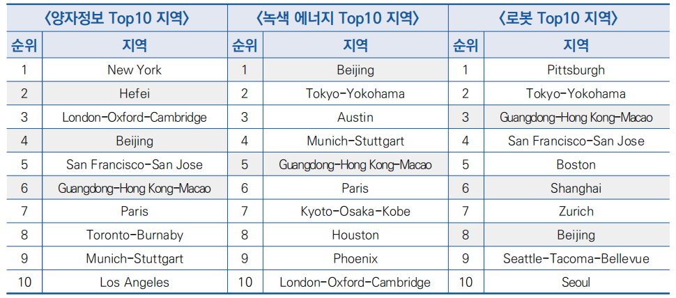 ![]() ○ (6대 분야) 양자 정보, 녹색 에너지, 로봇, 메타버스, 첨단통신, 생명공학 등 분야에서도 10위권에 진입