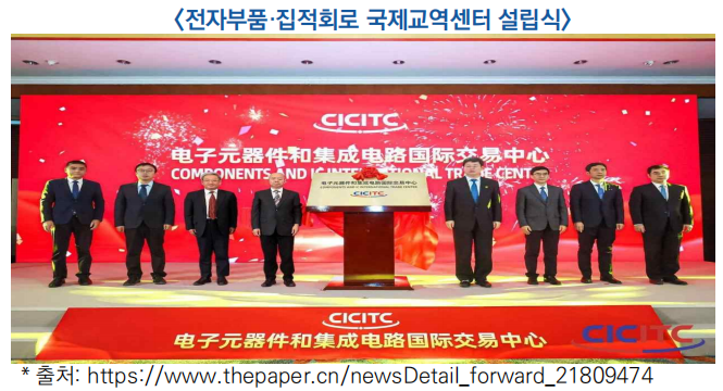 - 산업 망 상·하류 기업의 개방·협력 생태계를 조성하여 국제 전자부품·집적회로 국제교역 플랫폼 구축