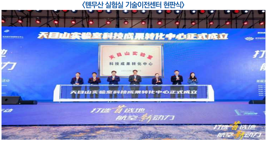 - 저장성 10대 성(省) 실험실 중 하나인 텐무산 실험실은 지난해 6월 설립되어 항공분야 핵심기술 혁신 실현 및 항공과학기술 리더십 형성 등 항공분야 내 글로벌 경쟁우위 확보
