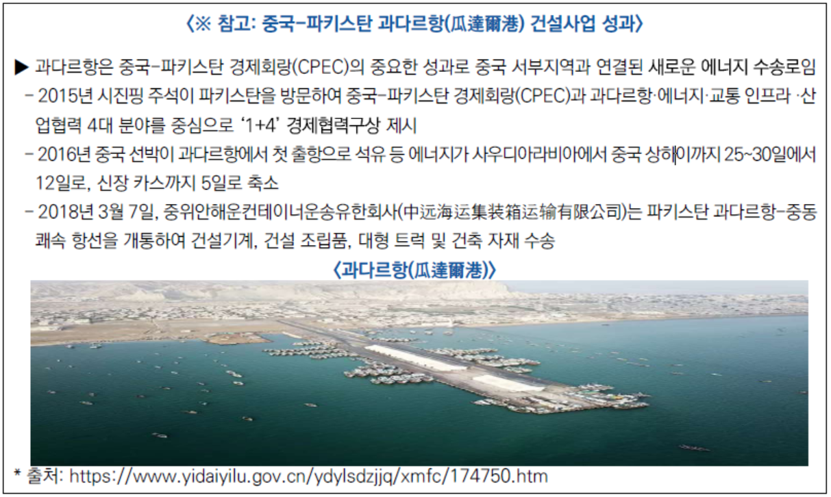 - 특히 중국-파키스탄 간 산업협력 수준을 향상하고 중국-파키스탄 경제회랑(CPEC) 사업 발전 적극적 추진