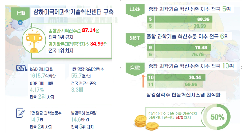 ○ 대표적인 지역클러스터인 징진지, 장강삼각주,웨강아오대만구 지역의 R&D 혁신이 크게 성장