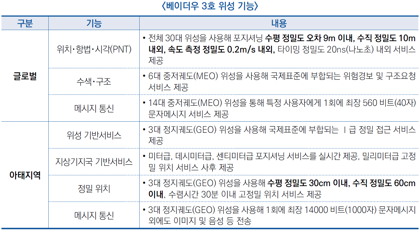 - 글로벌 위치 정확도는 오차 5m 이내로, 지능형 운영, 궤도 소프트웨어 업그레이드, 실시간 글로벌 모니터링 시스템, 시스템 정보게시 서비스 등을 실현