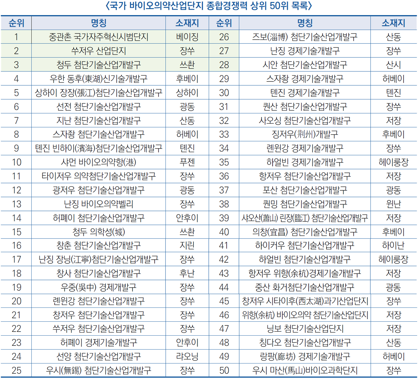 | ‘2022 중국 바이오의약산업단지 경쟁력 평가’ 분석 | ||