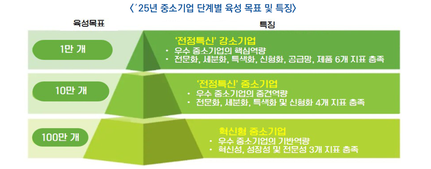 - ′25년까지 10만개의 전정특신 중소기업, 1만개의 강소기업을 육성한다는 목표를 제시