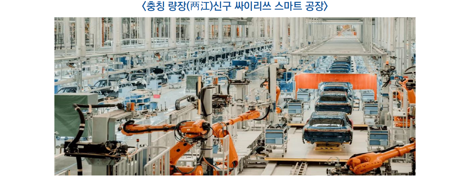 - 충칭하이테크 구역 네트워크 연결 자율 주행 시범구역 및 량장(兩江)신구 국가 차량 연결 시범구역 등 주요 프로젝트 건설