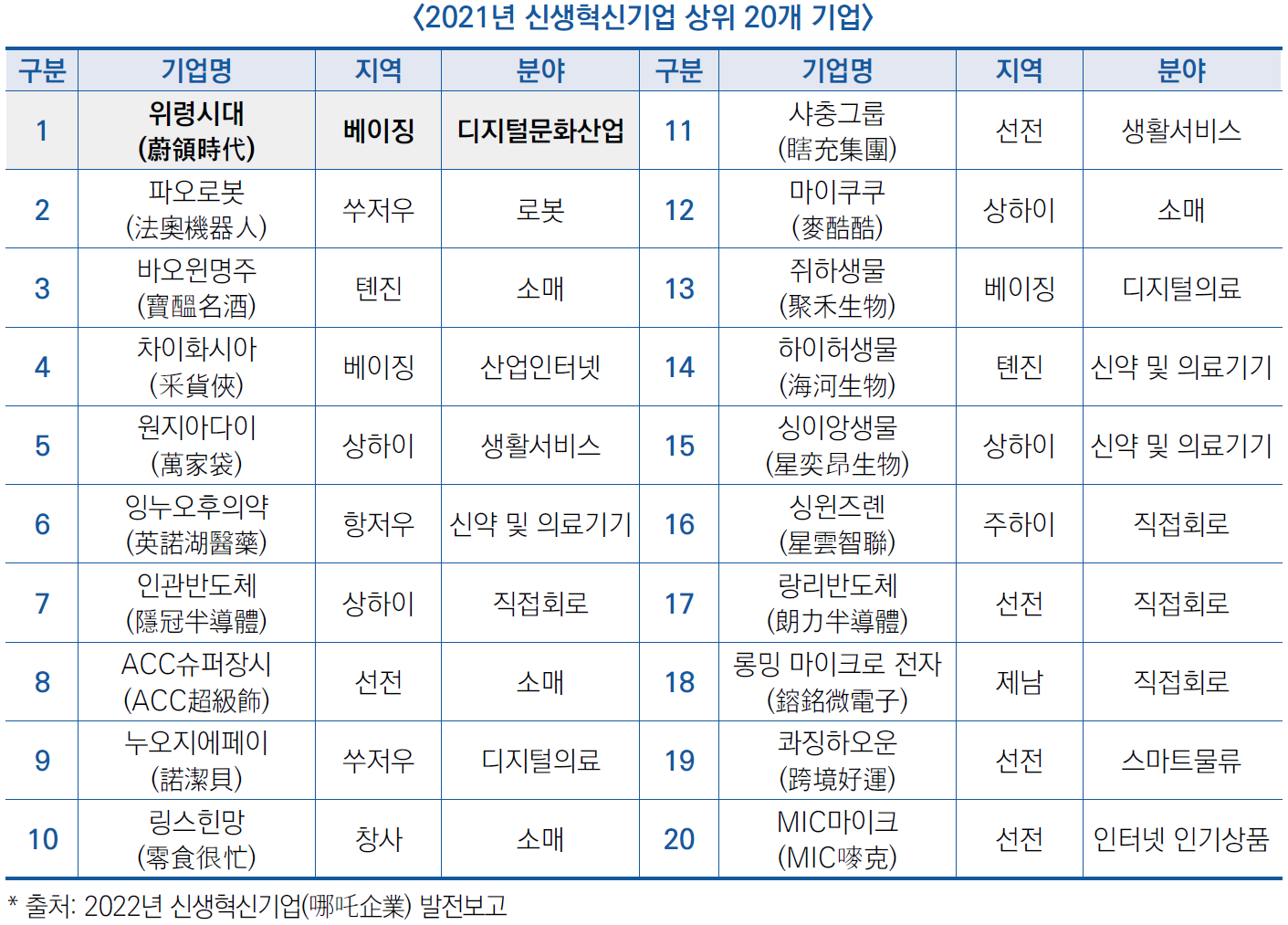 | ′22년 ‘신생혁신기업(哪吒企業)’ 발전 현황 조사 | ||
