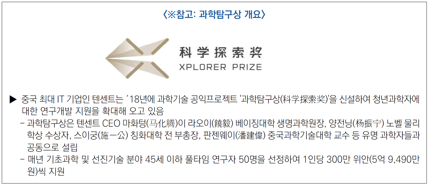 * 과학탐구상은 ‘18년에 텐센트가 중심이 되어 유명과학자들과 함께 신설