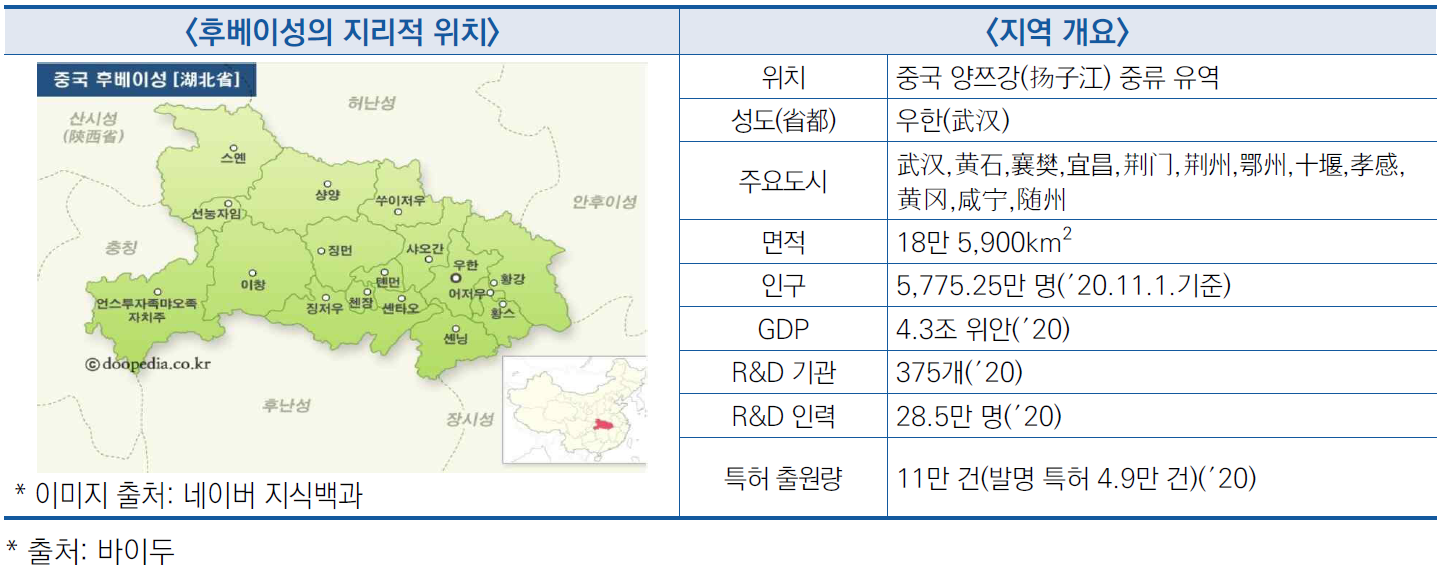 - 후베이성은 ICT 산업을 중심으로 육성하고 있으며 스마트 단말기·집적회로·평판 디스플레이· 광통신·레이저·소프트웨어 및 정보 서비스·베이도우(北斗)시스템 등 산업 사슬을 구축 강화